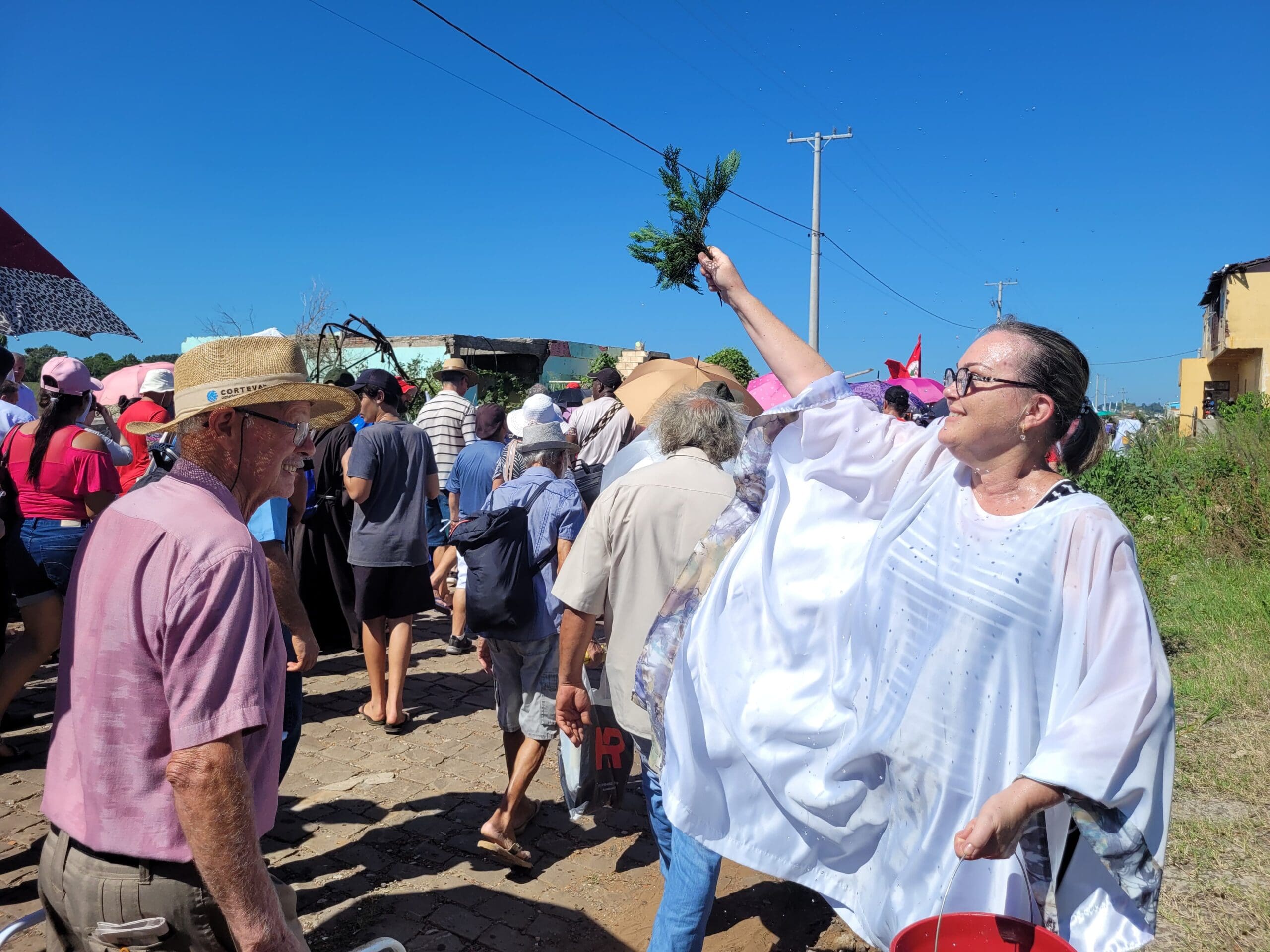 Romeiros e Romeiras caminharam entre os escombros de um bairro inteiro destruído pela enchente em Arroio do Meio Por Marcos Antonio Corbari Instituto