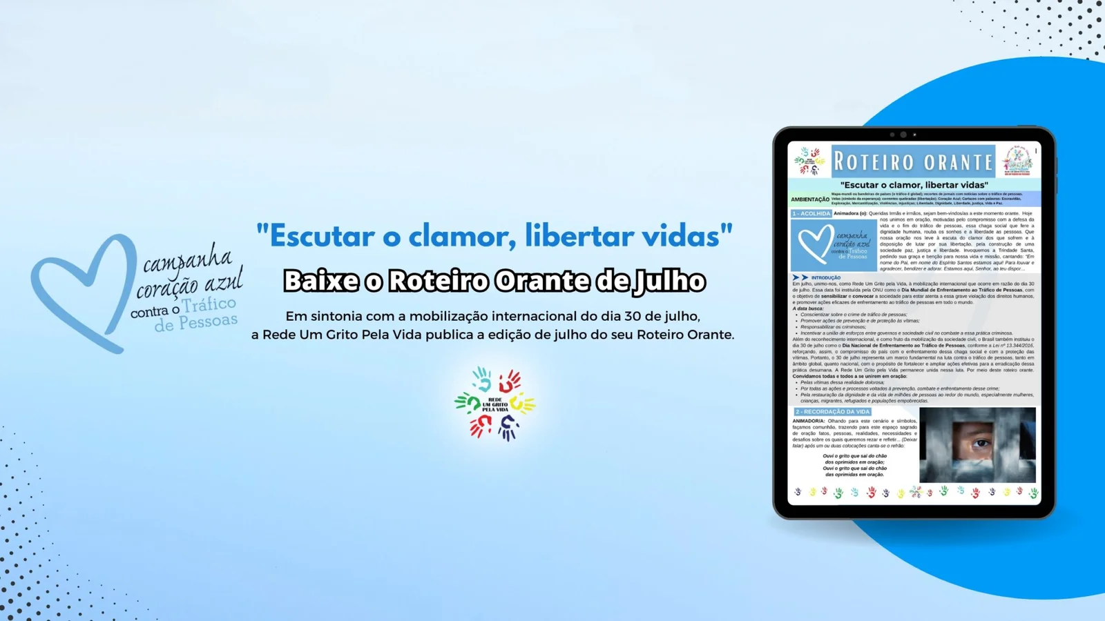 Roteiro de Oração da Rede Um Grito Pela Vida, com o tema “Escutar o clamor, libertar vidas”, convida para a oração e ação concreta