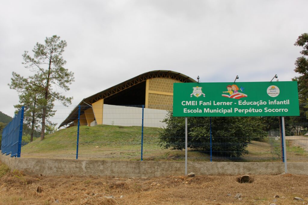 As crianças que frequentam a escola infantil municipal, convivem com a poeira da fábrica que está instalada ao lado da escola. Foto| Cláudia Pereira – APC