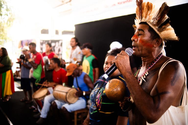 Gilberto, da Escola dos Ventos em Caetés/PE: “O Congresso está muito bonito, tem muita gente do Brasil inteiro. Viemos trocar experiências e compartilhar a nossa articulação contra o avanço dos empreendimentos.”