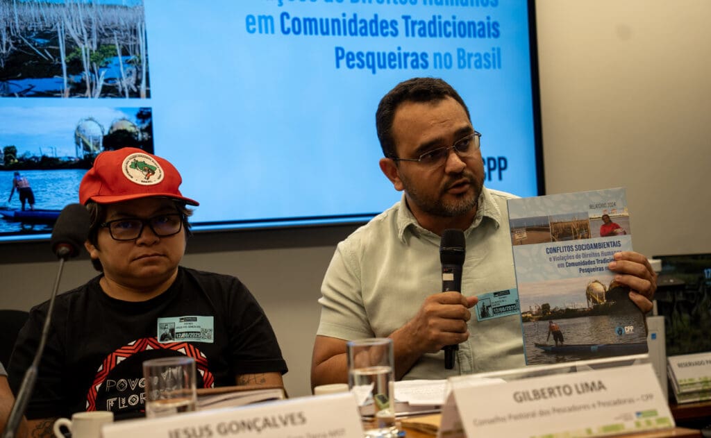 O secretário executivo do CPP, Gilberto Lima, trouxe à audiência pública o panorama de violações enfrentadas pelas comunidades pesqueiras em todo o Brasil. Ele afirmou que essas populações sofrem “uma violência histórica, que vem ali trazendo especulação imobiliária, a privatização dos territórios e a criminalização da pesca artesanal”, denunciou. Lima também destacou o surgimento de novos tipos de ameaça, provocados principalmente pela forma como está sendo conduzida a chamada transição energética. “É a violência causada pela dita transição energética, que tem sido conduzida sem salvaguardas, do qual proteja as comunidades. E muito menos sem realizar a consulta prévia, livre e informada, no qual determina a Convenção 169 da OIT”, relatou o secretário. Gilberto entregou à Comissão o 3º Relatório de Conflitos Socioambientais e Violações de Direitos Humanos, lançado em abril de 2025, que reúne dados de 450 comunidades acompanhadas pelo CPP entre 2022 e 2024.