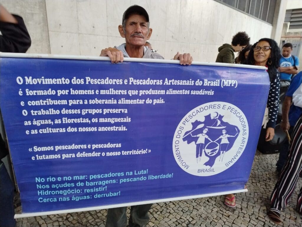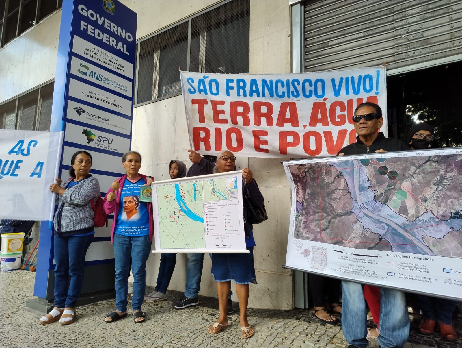 “Estamos aqui esperançando sucesso com a ocupação, há muito tempo estamos lutando essa batalha. É uma alegria eu estar aqui hoje lutando pelo nosso território com minha família, vieram os filhos e os netos. Três gerações na SPU”, disse Maria Neuza Araújo Pereira, pescadora e benzedeira da comunidade Canabrava.